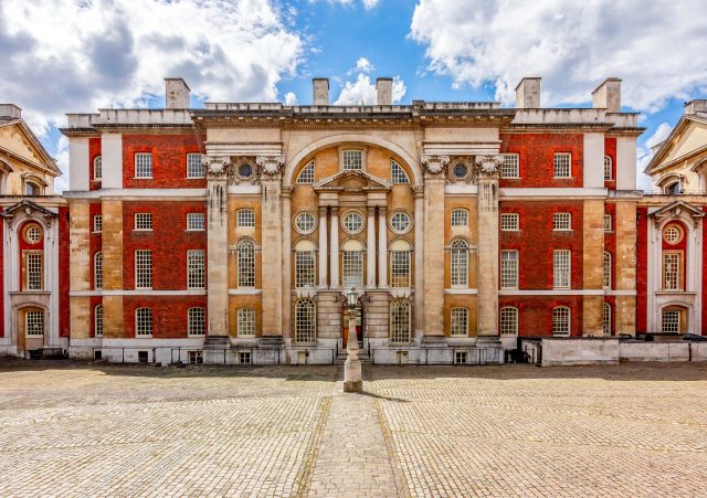 Old Royal Naval College and National Maritime Museum in London Greenwich – aerial view